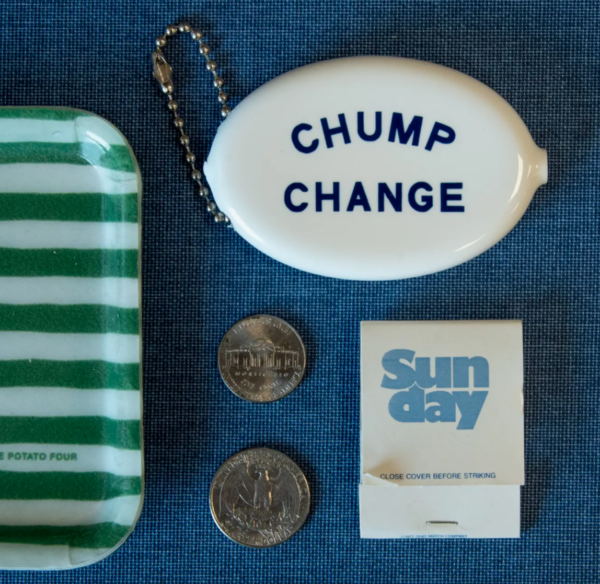 Once a memento of old-school amusement parks and Summer camps, these vintage-inspired rubber coin pouches adorned with the latest Three Potato Four designs are our new favorite accessory. Stays closed keeping all of your coins, cash, and secrets safe. Squeeze to open. Great as: Coin Purse (of course!) Cutest accessory for your bag. Clever way to give a small gift. Secret Stash Hideaway Quick Ship 3” x 2” This pouch is white with a “Chump Change” message in navy blue. Made in U.S.A.