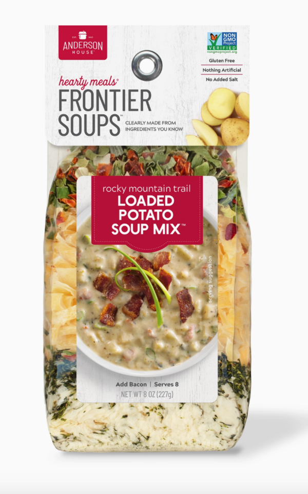 Rocky Mountain Trail Loaded Potato Soup is a perfectly seasoned creamy and indulgent loaded potato soup, with all the savory goodness and velvety richness of your favorite comfort food. We like top our bowls with crumbled bacon and shredded cheese. Gluten Free, Non-GMO, No Added Salt.